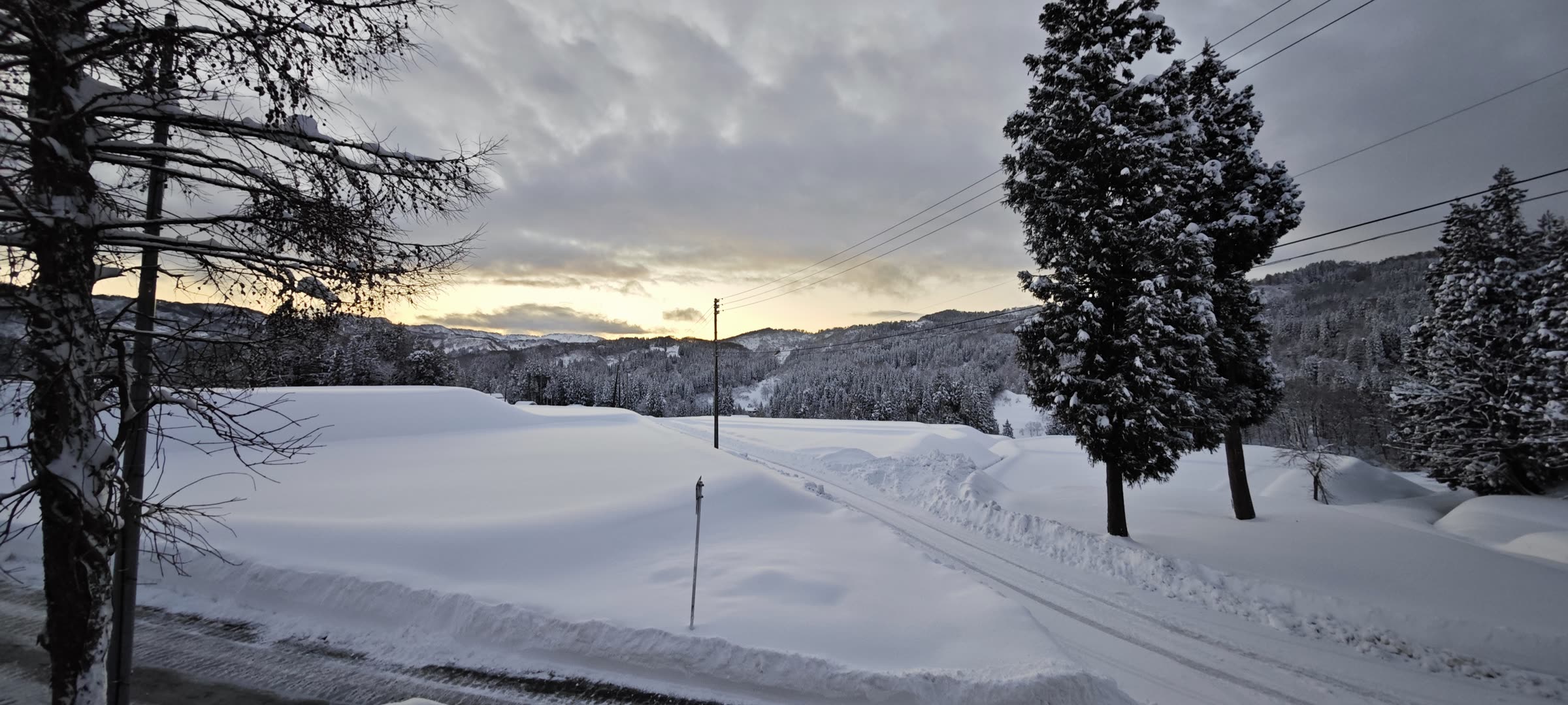 A still white world beyond the glass, witnessed from tatami.